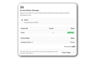 Con una interfaz sencilla, los usuarios pueden ver el origen actual, inspeccionar service workers registrados y gestionar el almacenamiento en caché. Las funciones incluyen la posibilidad de desregistrar service workers, limpiar el almacenamiento en caché y reiniciar el origen con una acción. Este complemento se centra exclusivamente en hacer visible y eliminable el estado obsoleto del origen, evitando complicaciones en el proceso de depuración, sin incluir analíticas ni permisos amplios.